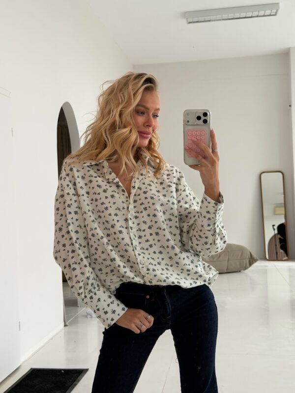 koszula Roomy – print drobny kwiat błękit ecru