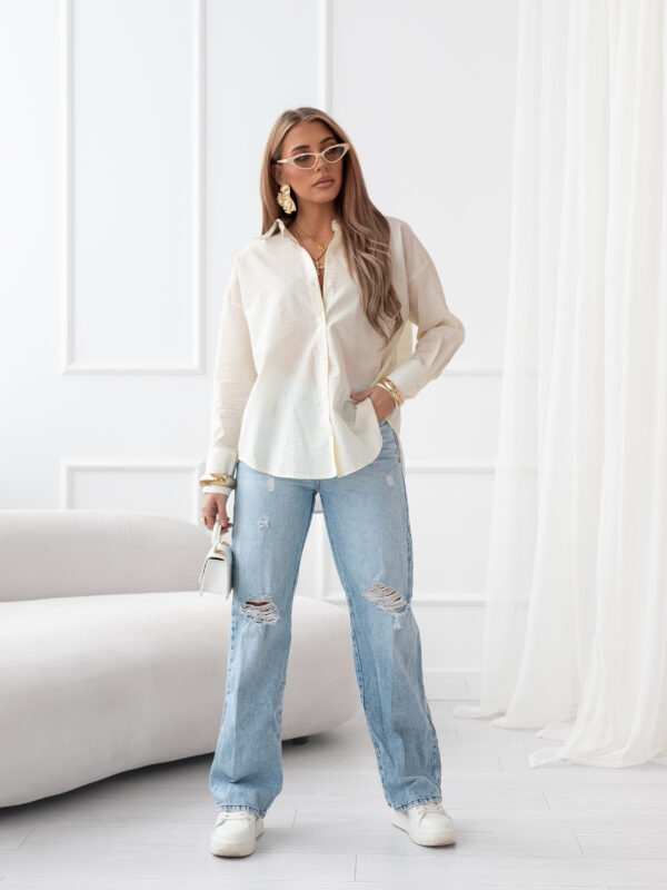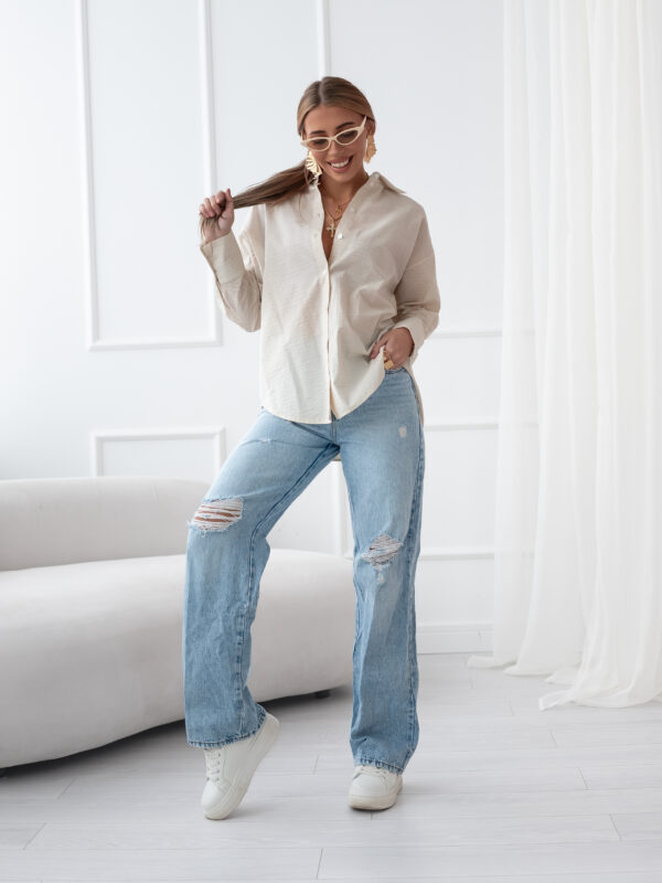 koszula Roomy – prążek jasny beż