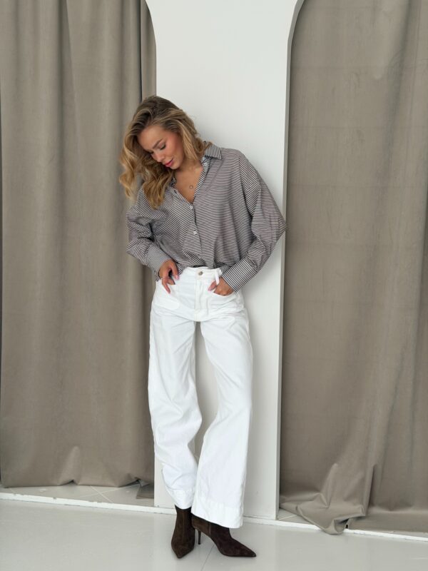 Koszula o swobodnym fasonie. Zapinana na białe, małe guziki. Rękaw wykończony wysokim mankietem. Obniżona linia ramion. Z łatwością połączysz ją z różnymi elementami swojej…