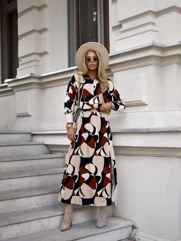 spódnica Midi – print drobna łączka pomarańcz ecru