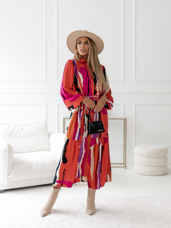 Sukienka Helen – print patchwork brąz pomarańcz niebieski
