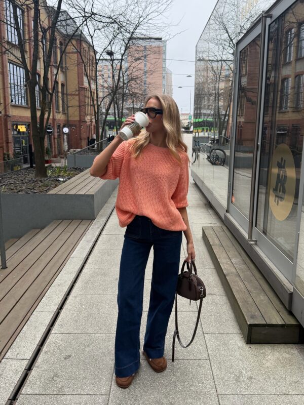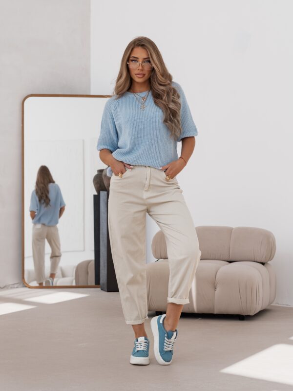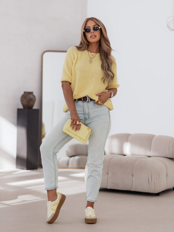 [if is_user_logged_in=off] Sweter o charakterystycznym splocie. Wykonany z miękkiej, przyjemnej w dotyku dzianiny. Model posiada klasyczny, okrągły dekolt. Ozdobne przeszycia na ramionach. Sweter z krótkim rękawem.…