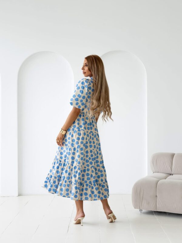 sukienka Emilie – print grochy beż niebieski