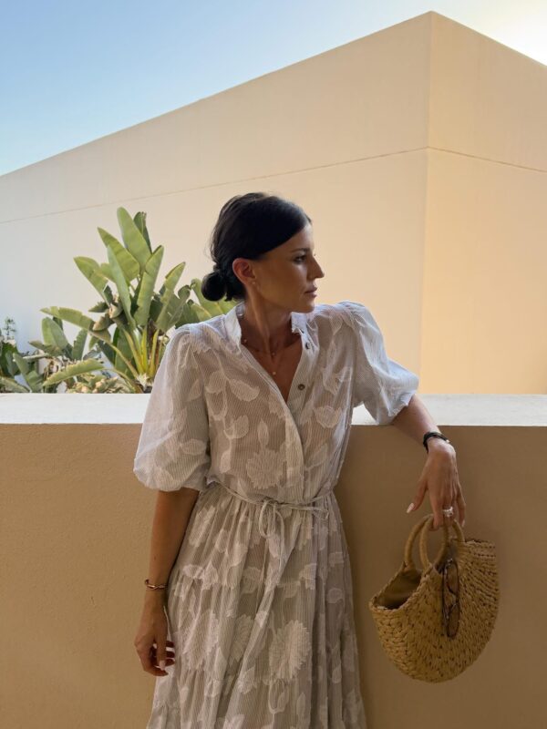 sukienka Emilie – haft kwiat mięta ecru