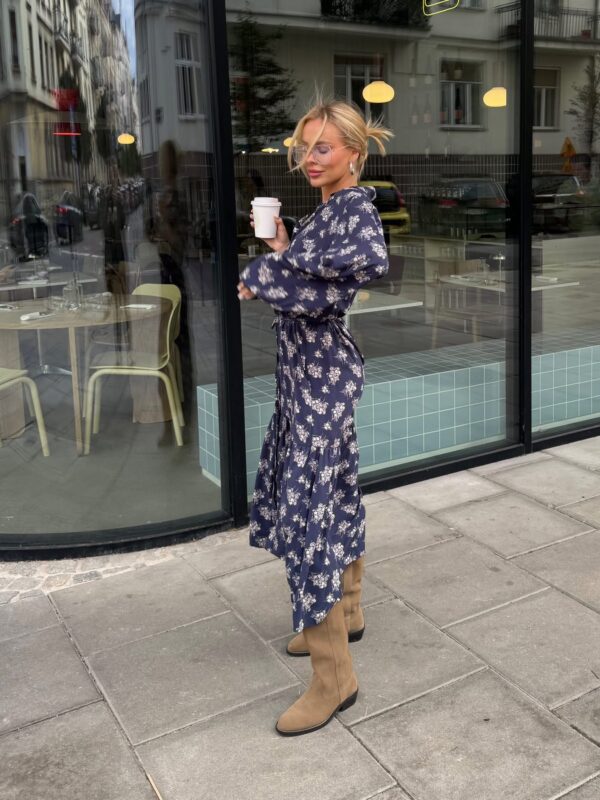 sukienka Emilie – print kwiat błękit ecru