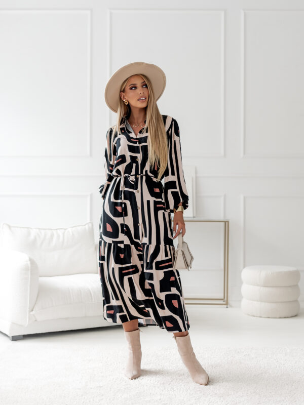 sukienka Anne – print czerń beż