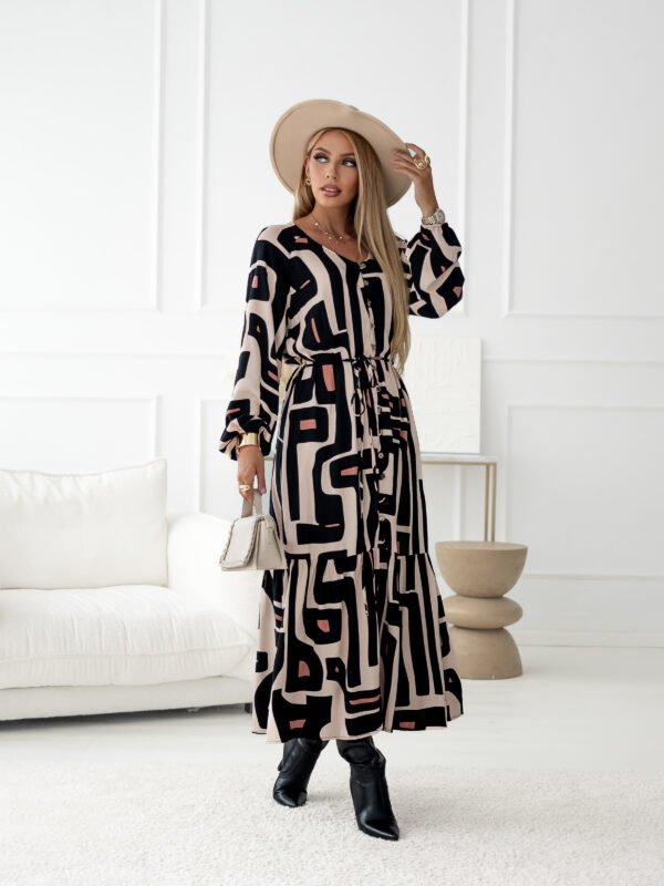 sukienka Sanita – print beż czerń brąz
